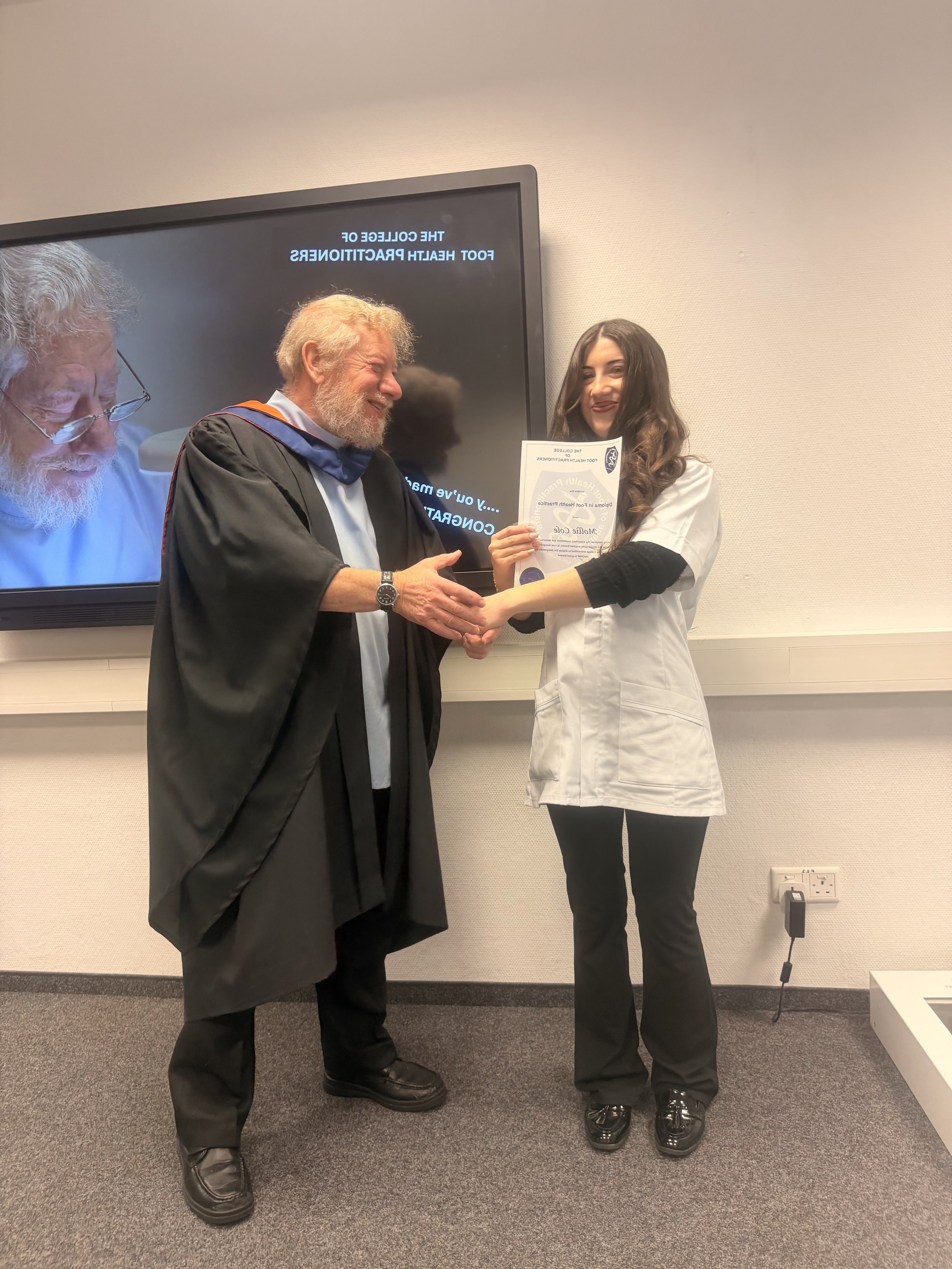 Wanting to expand my clinical knowledge and provide more specialised support, I made the decision to train as a Foot Health Practitioner at the College of Foot Health Practitioners in Rowley Regis, Birmingham. This allows me to combine my hands-on care experience with focused foot health expertise, ensuring safe, effective treatment tailored to each individual’s needs.